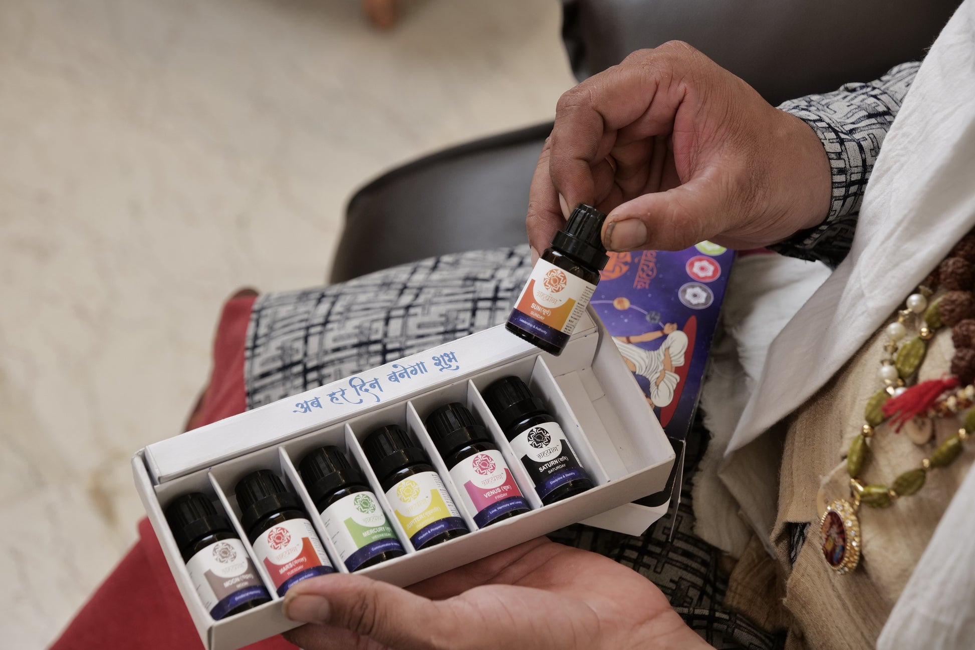● Planetary Balancing Kit (GrrahYog) ek 7 oils ka special set hai jo 7 grahon – Surya, Chandra, Mangal, Budh, Guru, Shukra aur Shani ke asar ko balance karta hai. Astrology ke hisaab se, insaan ki zindagi par sabse bada prabhav inhi grahon ka hota hai – job, shaadi, health, paise, rishton se lekar aapke din-raat ki safalta tak.